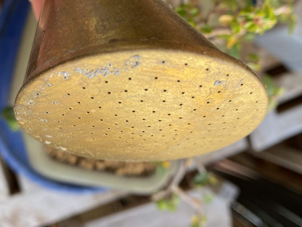 Desde hace bastantes meses mi regadera roja Haws sufría una gran disfunción. La roseta original de riego fino se rompió. Tuve que usar otra más grande que además echaba mucha cantidad de agua. Esto era un problema serio. No podía regar adecuadamente. La tierra se salía de las macetas. El riego era ineficiente porque no llegaba a empapar gradualmente el sustrato. Gran parte del agua se precipitaba por el suelo sin control.
