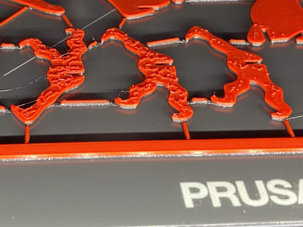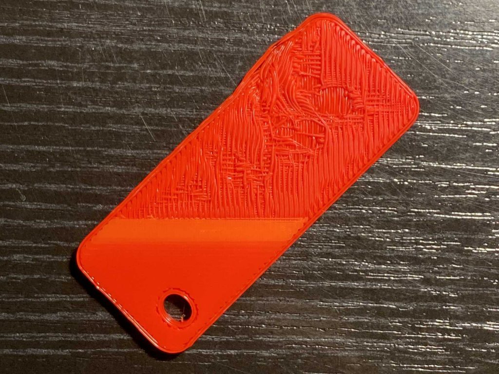 Había activado el ironing en PrusaSlicer. La explicación de la técnica en la ayuda de Prusa era que la boquilla caliente pasa sobre la capa superior para alisar la superficie y conseguir un acabado brillante casi como en una lámina de plástico inyectado. Perfecto para kit cards, pensé. Una superficie lisa y profesional.