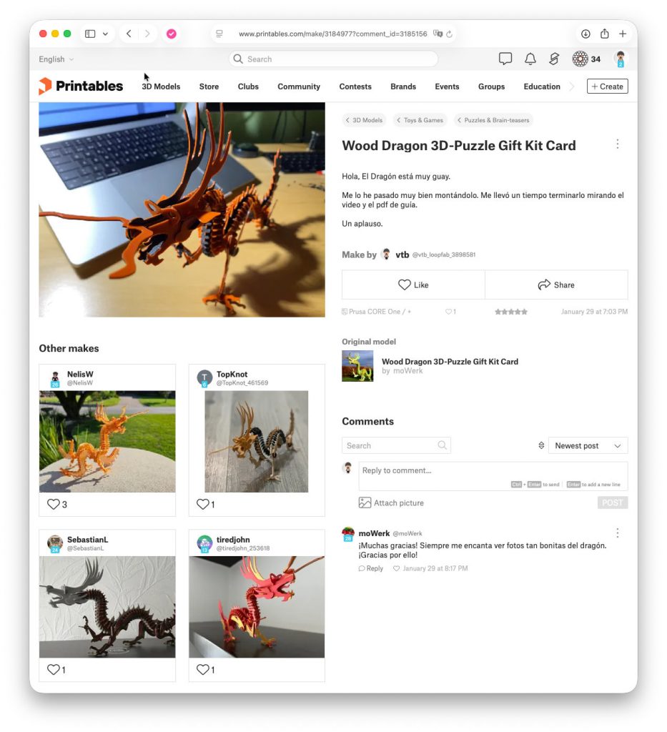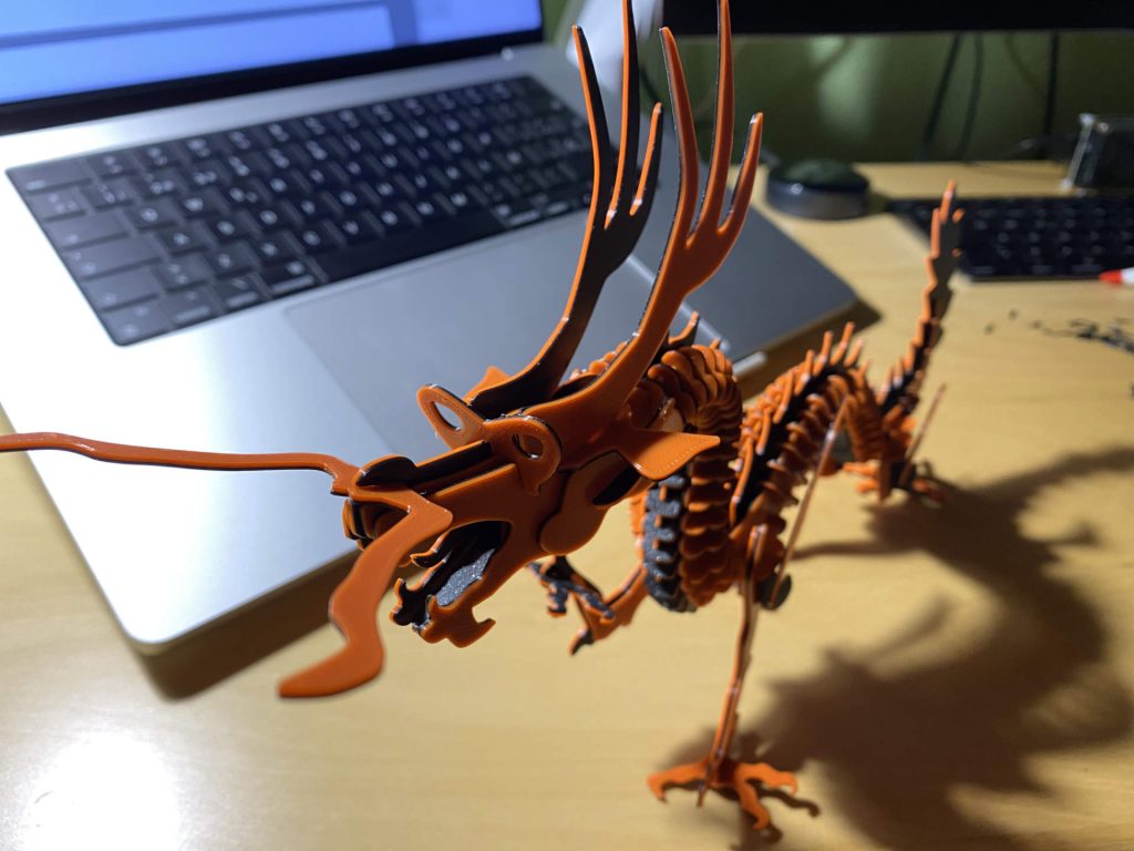 No era un dragón cualquiera. Era una recreación de un puzzle de madera tradicional. 148 piezas. Diseñado para ensamblarse por fricción sin pegamento. Con personalidad. Con presencia. Y venía originalmente como kit card.
